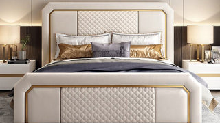 The design of the Letto luxury leather double - bed skillfully blends the essence of modern and European styles, making it a visual focal point in the bedroom. Its lines are simple and smooth, yet exude elegance and grandeur, outlining a refined and stylish silhouette.