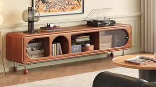 In the inviting space of a living room, the TV stand holds a special place, acting as a key element that combines practicality and aesthetic charm. The JASIWAY All Solid Wood TV Stand, drawing inspiration from a harmonious mix of minimalist American, natural wood, and French retro styles, is a standout piece designed for small - sized living rooms. It's not just a TV stand; it's a multi - functional storage cabinet that seamlessly blends mid - century allure with everyday usefulness.