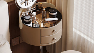 The choice of premium silicone leather, comparable to that used for mother - and - baby products, for the drawer fronts is a testament to the attention to detail. This material is not only soft to the touch but also highly durable, resistant to scratches and stains, and easy to clean. The metallic knobs add a subtle yet elegant touch, enhancing the overall luxurious feel of the vanity table.