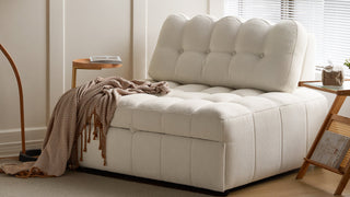 In the evening, when the space demands transformation, the single pull-out sofa bed effortlessly adapts to your needs. It allows for easy expansion into a full-size bed, offering enough room for a peaceful night’s sleep or a relaxing afternoon nap. Whether you're enjoying a solitary evening or sharing cozy moments with loved ones, this versatile piece will cater to your needs, providing comfort and relaxation without compromising on style.