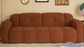 This sofa isn’t just furniture; it’s a work of art. Sitting gracefully in your living room, it exudes elegance and sophistication. Upholstered in caramel-colored tech velvet, the fabric gleams softly under sunlight, showcasing its unique charm. The warm caramel hue is both stylish and inviting, seamlessly blending with modern home aesthetics and adding a distinctive touch of character to your space.