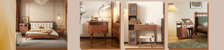 JASIWAY Vintage Solid Wood Master Bed with Upholstered Headboard