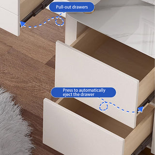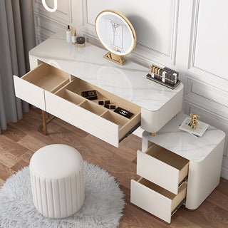 Equipped with four large drawers, this vanity provides ample storage for makeup, jewelry, and other personal items. The smooth sliding drawers help you keep everything neatly arranged and easy to access. This set is an excellent complement to your modern dressing table collection and enhances the overall functionality of your room.