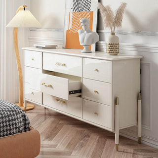 This storage cabinet features a unique design with spacious drawers and storage space, providing you with a convenient and organized storage solution. The smooth and effortless drawer operation makes it easy to access your belongings, enhancing the convenience and tidiness of your daily life.