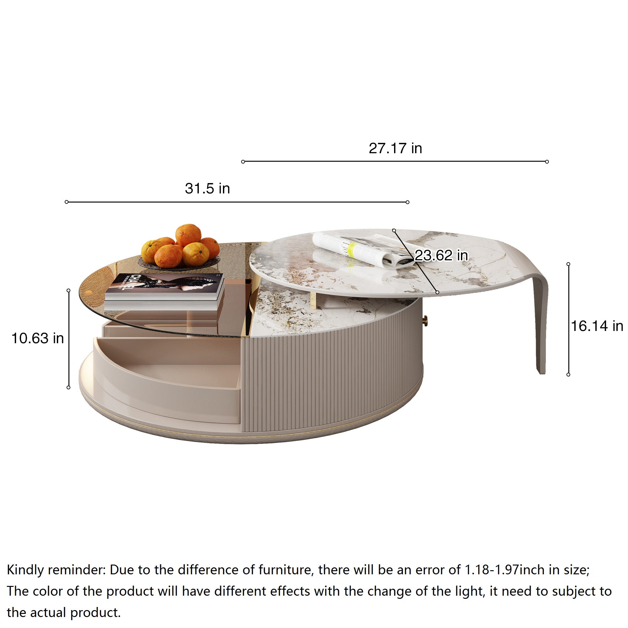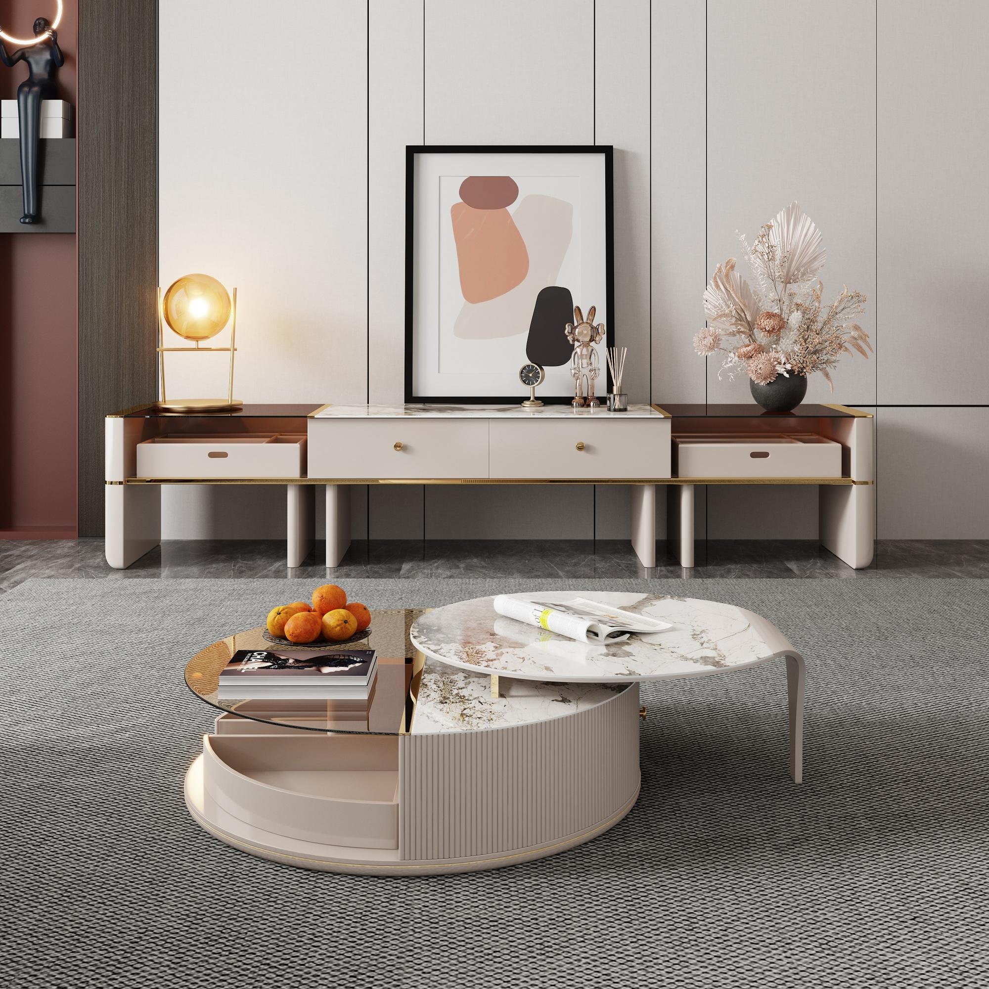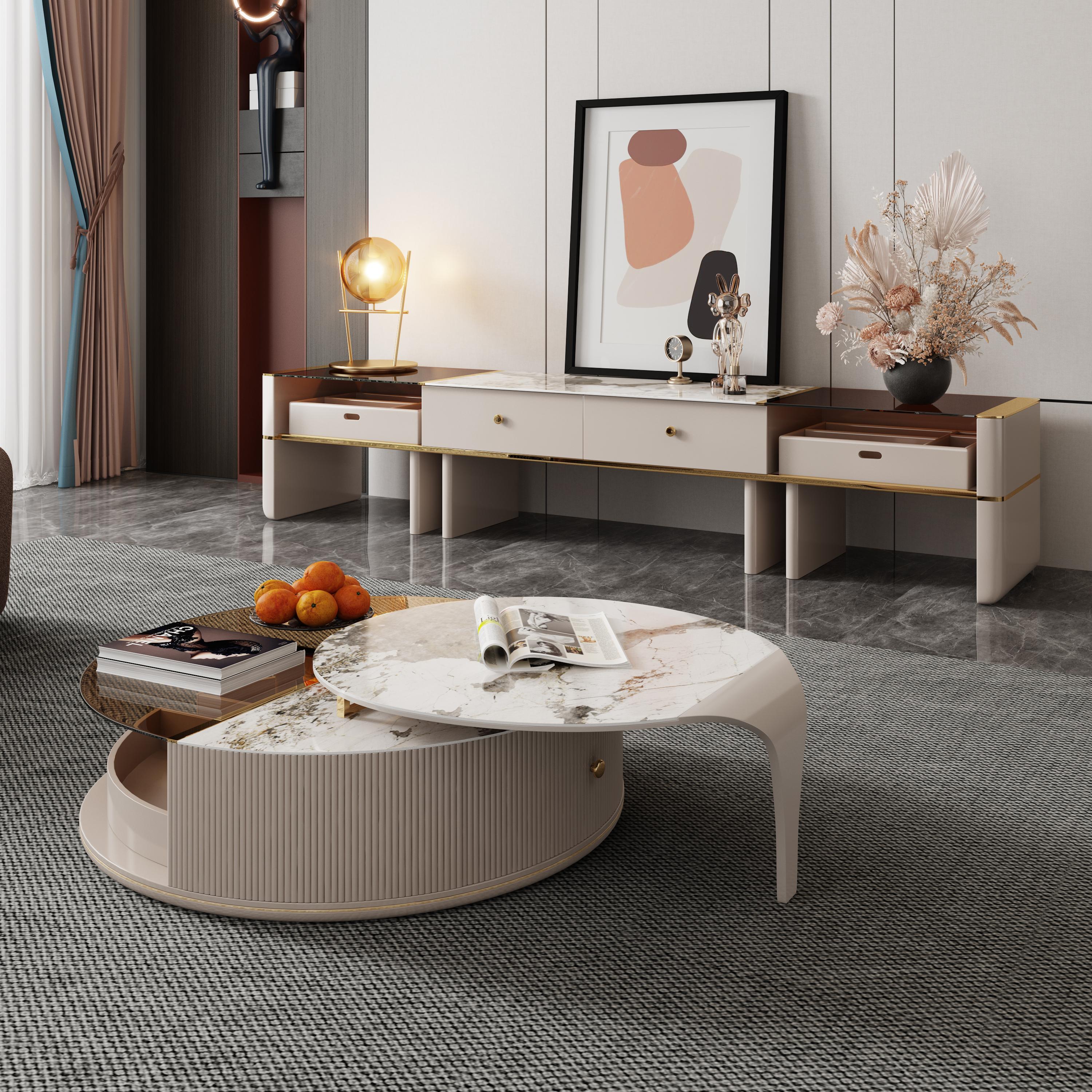 - The main material of the coffee table is made of sintered stone and high density protection board.