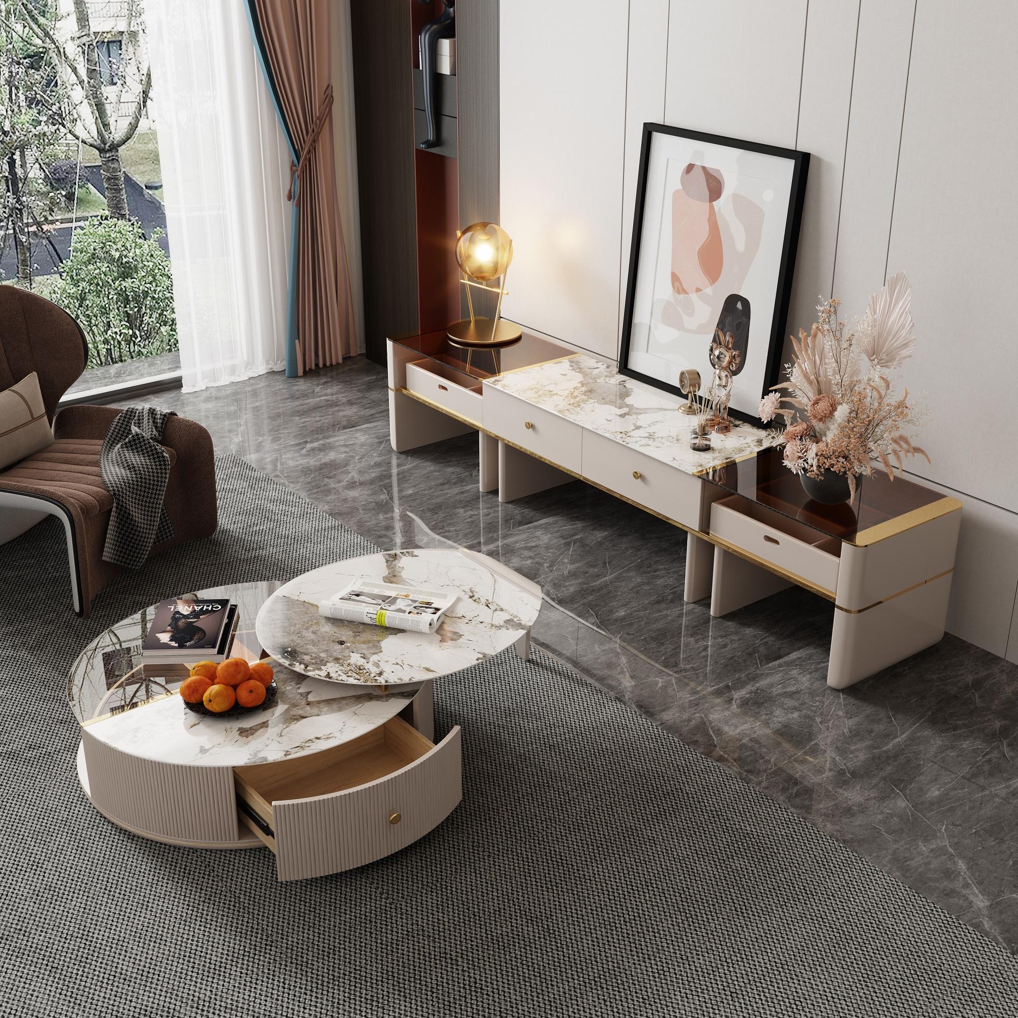 - The sintered stone table contains drawer storage and the round table can be freely moved and placed which can be used as a separate side table.