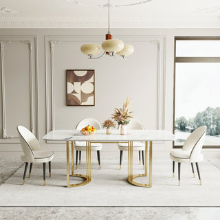JASIWAY Luxury Round Dining Table and Chair Set with Sintered Stone Tabletop