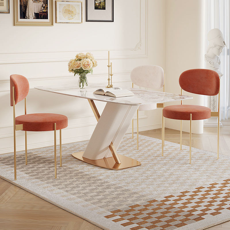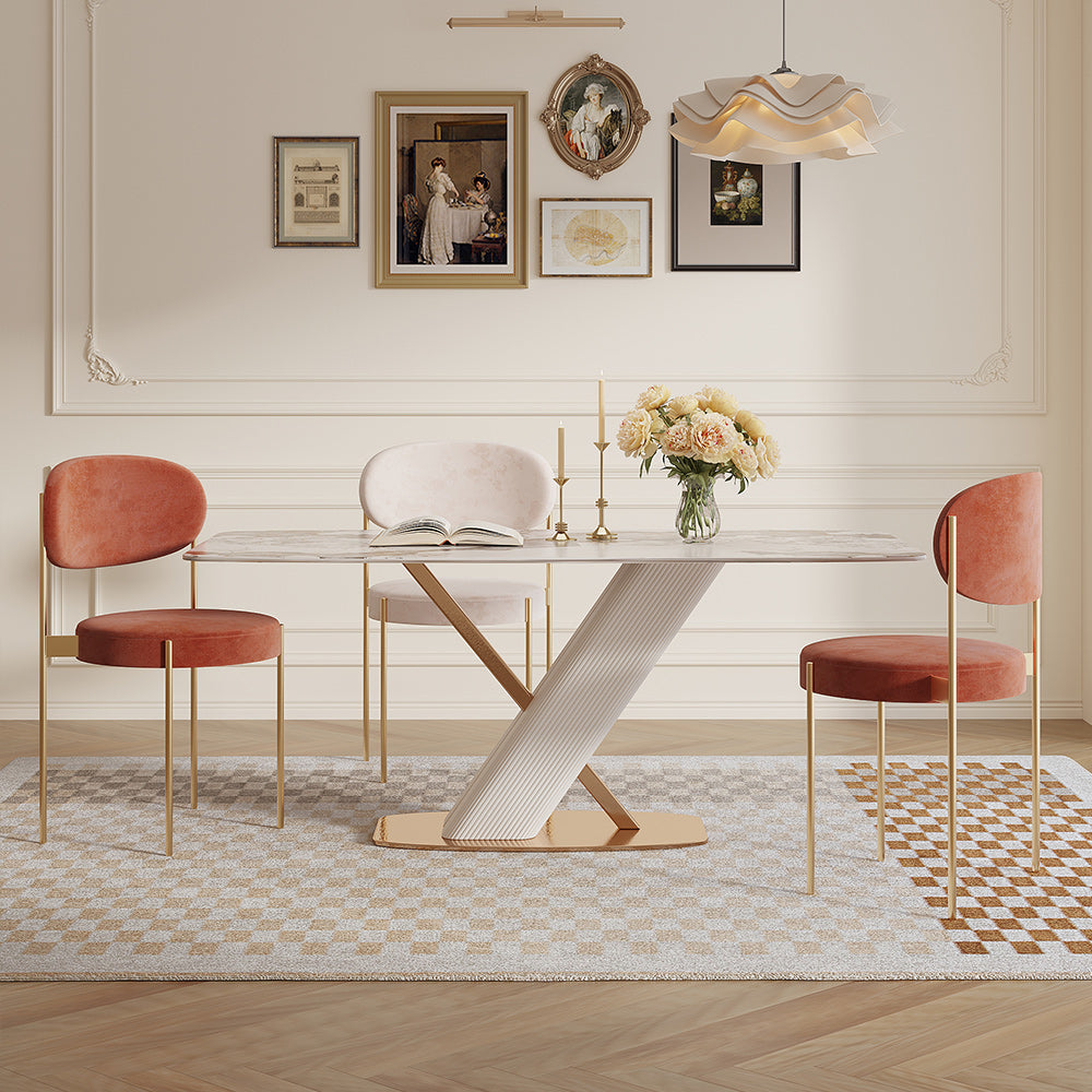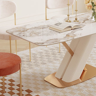 JASIWAY Modern White Rectangular Marble Dining Table Gold Stainless Steel X-Base