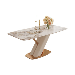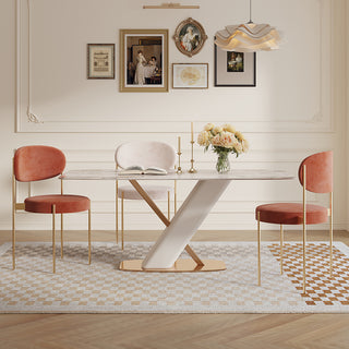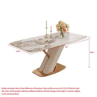 - Modern Elegance: The sleek and modern design of the dining table adds a touch of sophistication to your dining space. The white rectangular marble top with gold accents exudes a sense of opulence and refinement.