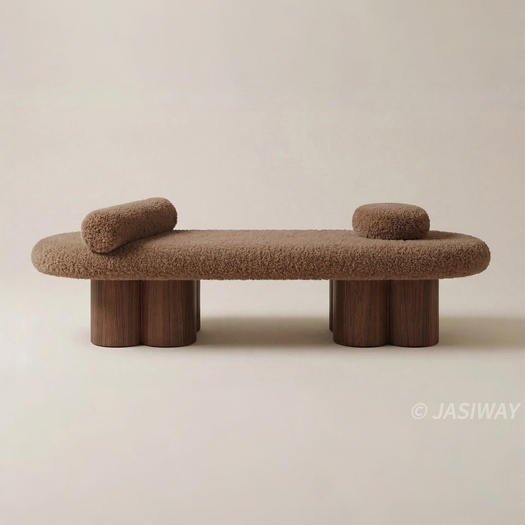 Unlike ordinary benches, this modern bouclé end of bed bench features an organic shaped bench silhouette paired with elegant scalloped legs, creating a soft, architectural presence. The gently rounded profile and sculptural form make it a statement piece that feels curated rather than mass-produced.