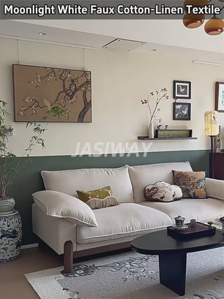 Moonlight White Faux Cotton-Linen – Breathable and soft for a relaxed, airy feel.