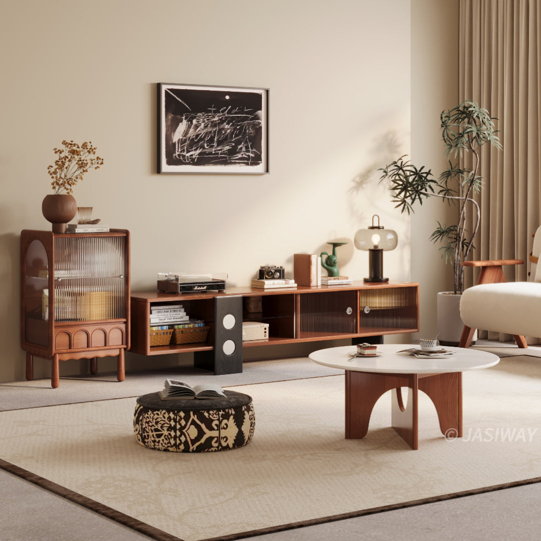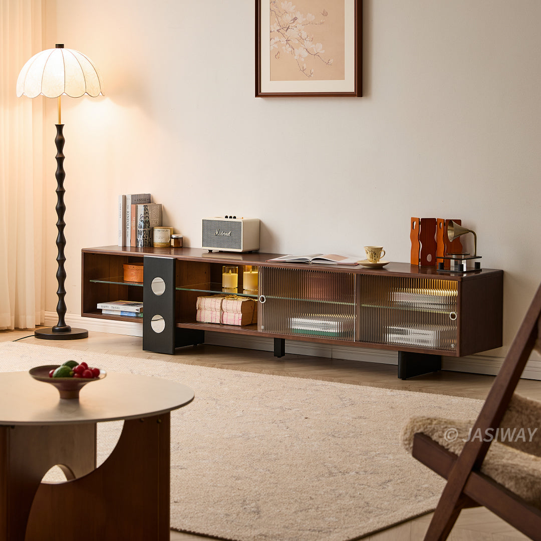 Yes. Unlike traditional swing doors, the sliding door TV stand design moves horizontally, which makes it perfect for tighter living room layouts or walkways. It allows easy access to storage without requiring extra clearance space, making it a practical choice for modern apartments and open-concept homes.