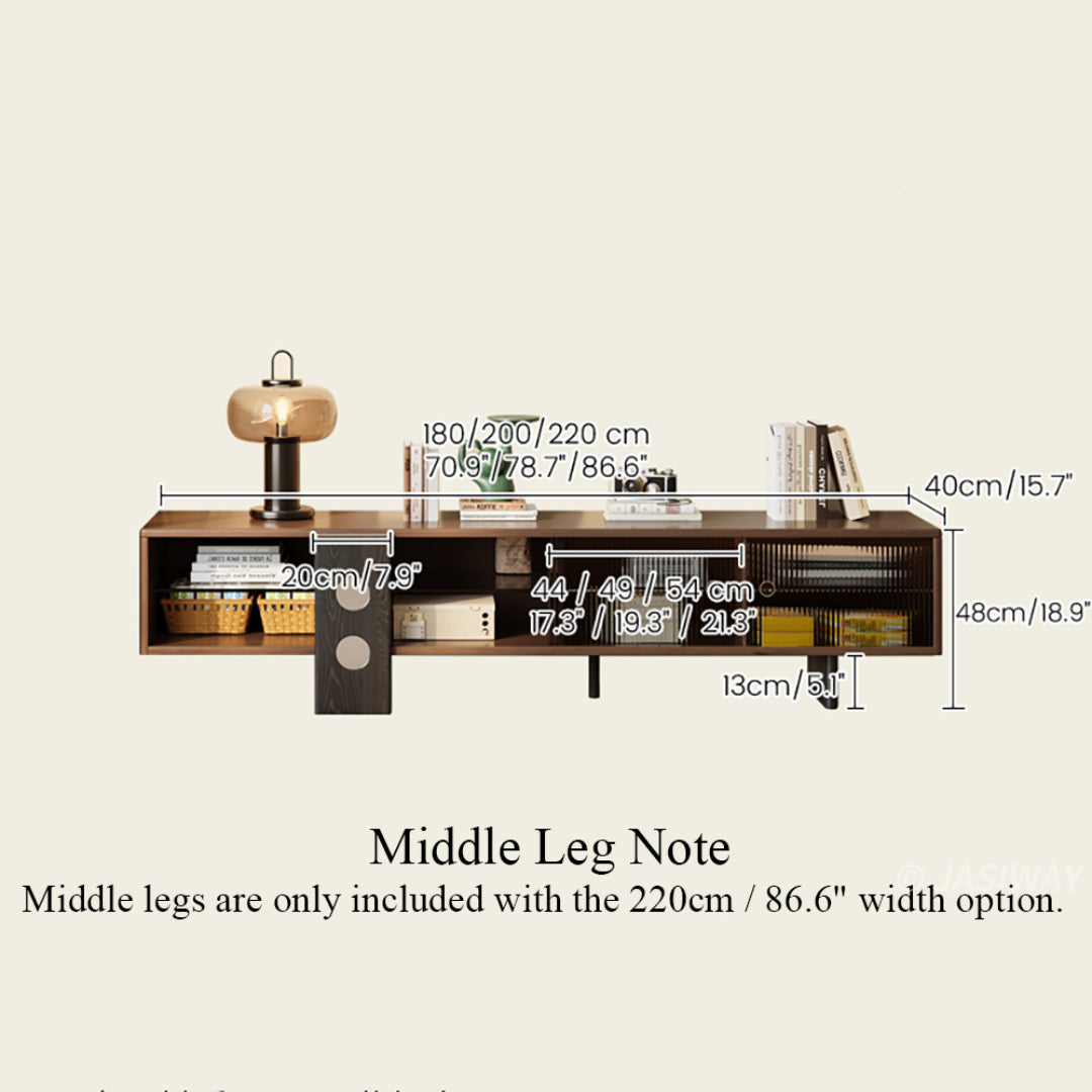 Available in three sizes – 180 / 200 / 220 × 40 × 80 cm ( 70.9" / 78.7" / 86.6" W × 15.8" D × 31.5" H ), this TV console table is proportioned to support most 55–85 inch TVs. The 220 cm version includes a center support leg for enhanced stability under larger screens, making it a reliable choice for those seeking a spacious entertainment center with structural confidence.