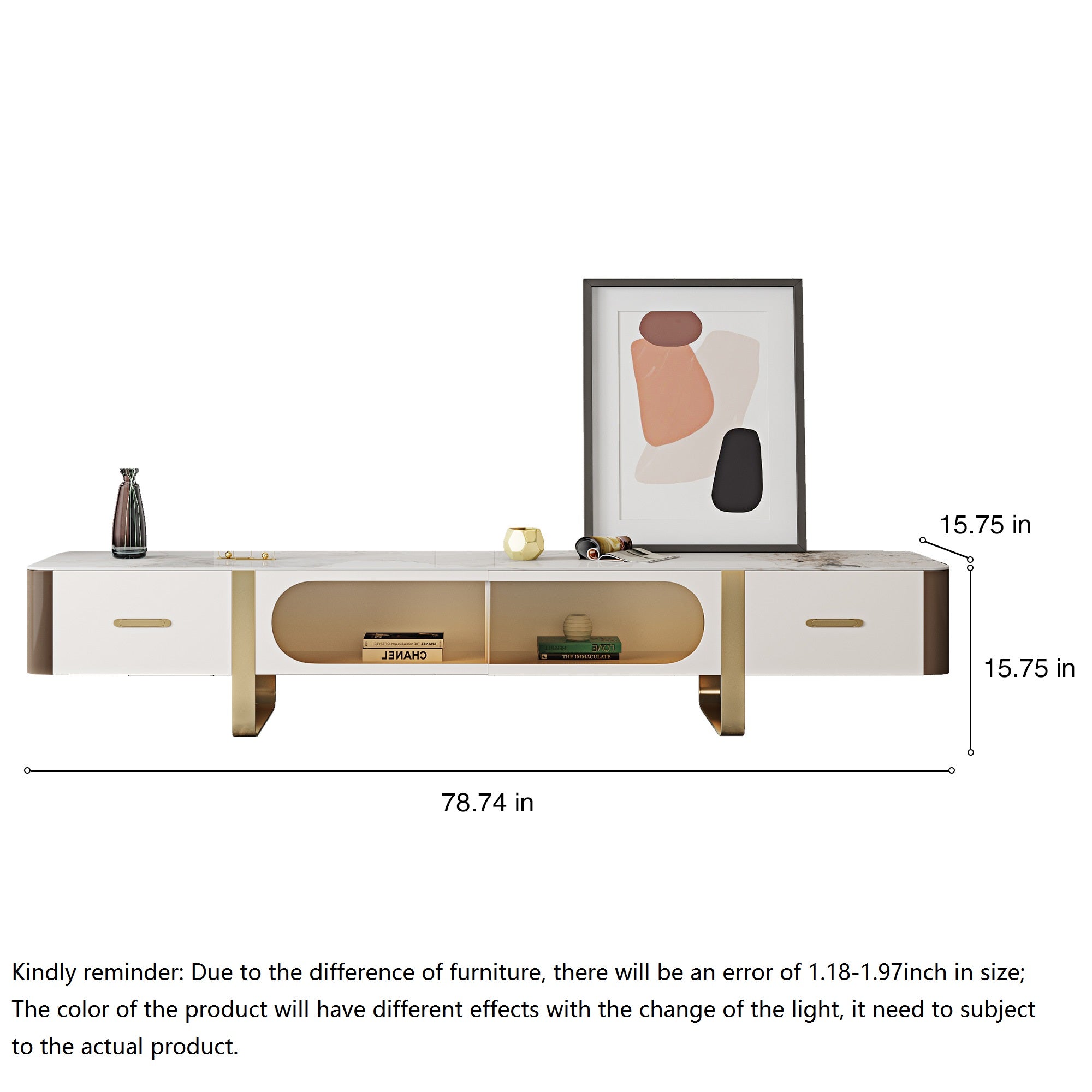 JASIWAY Modern 78.74'' TV Stand Glass Door Media Console with 2 Drawers and Storage Space