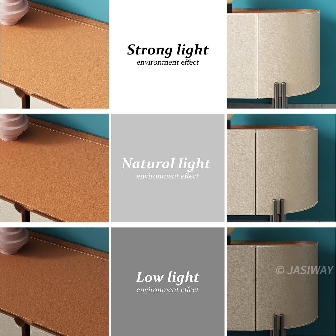 Routine care is simple. Dusting with a soft cloth or wiping gently with a slightly damp microfiber towel is usually enough to keep the surface looking new. Because the faux leather resists stains and absorbs less moisture than natural materials, it performs well as a low-maintenance leather TV stand for everyday use.