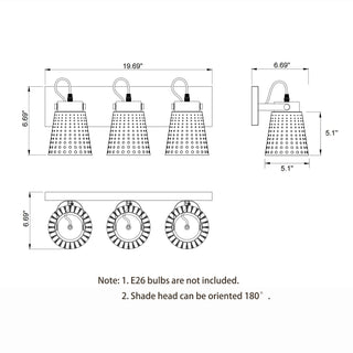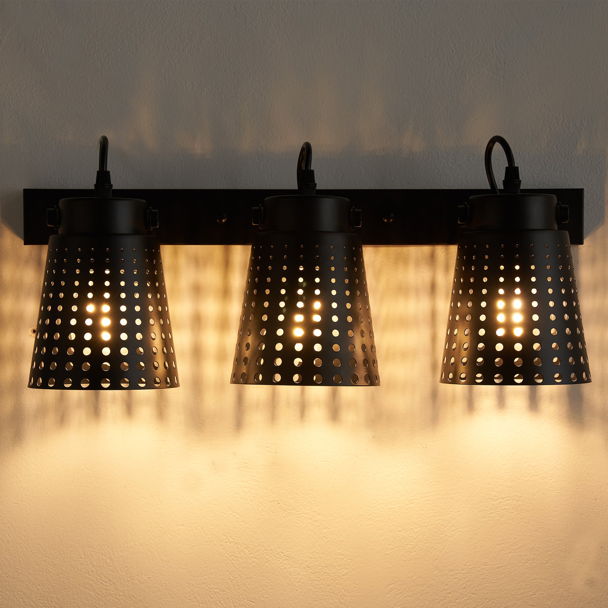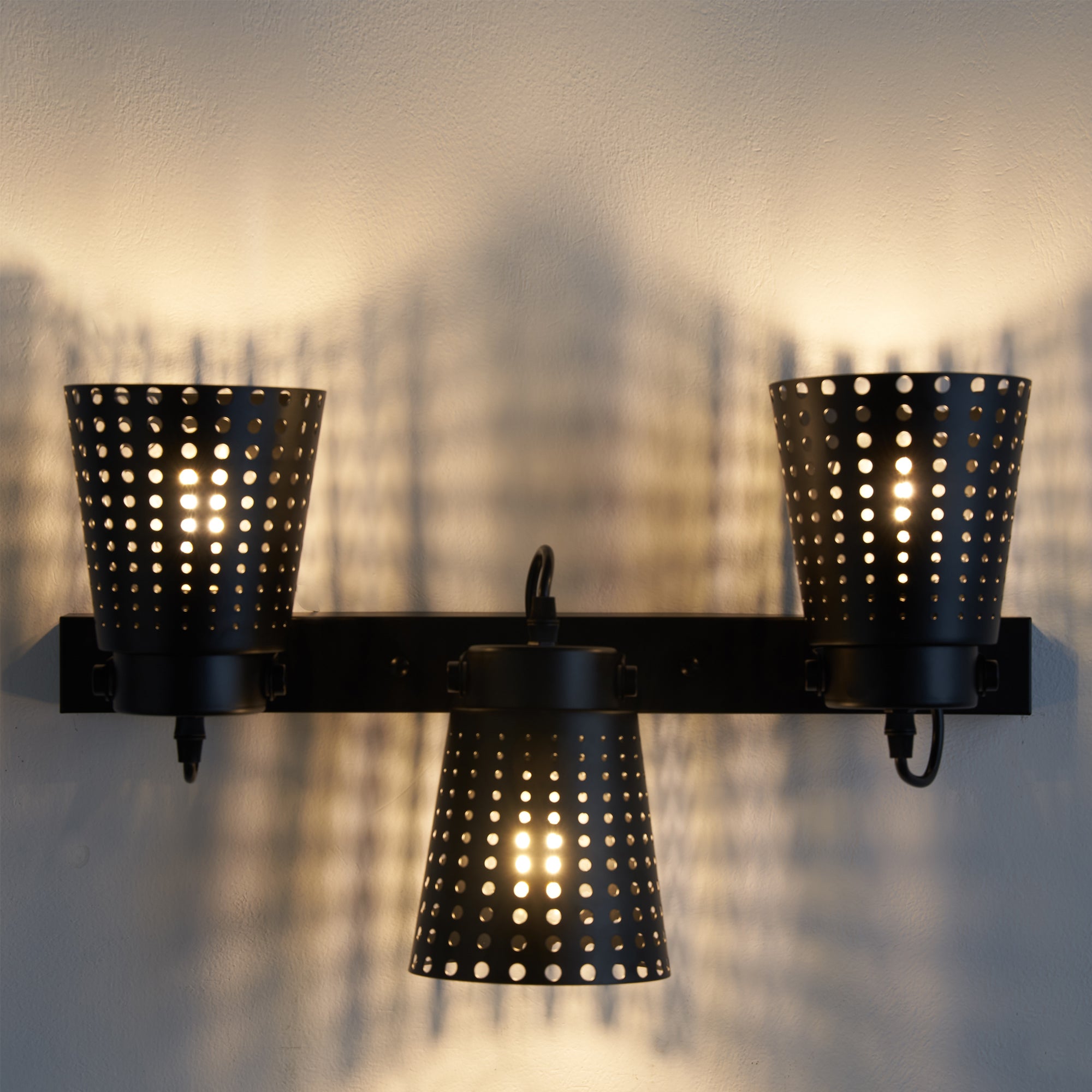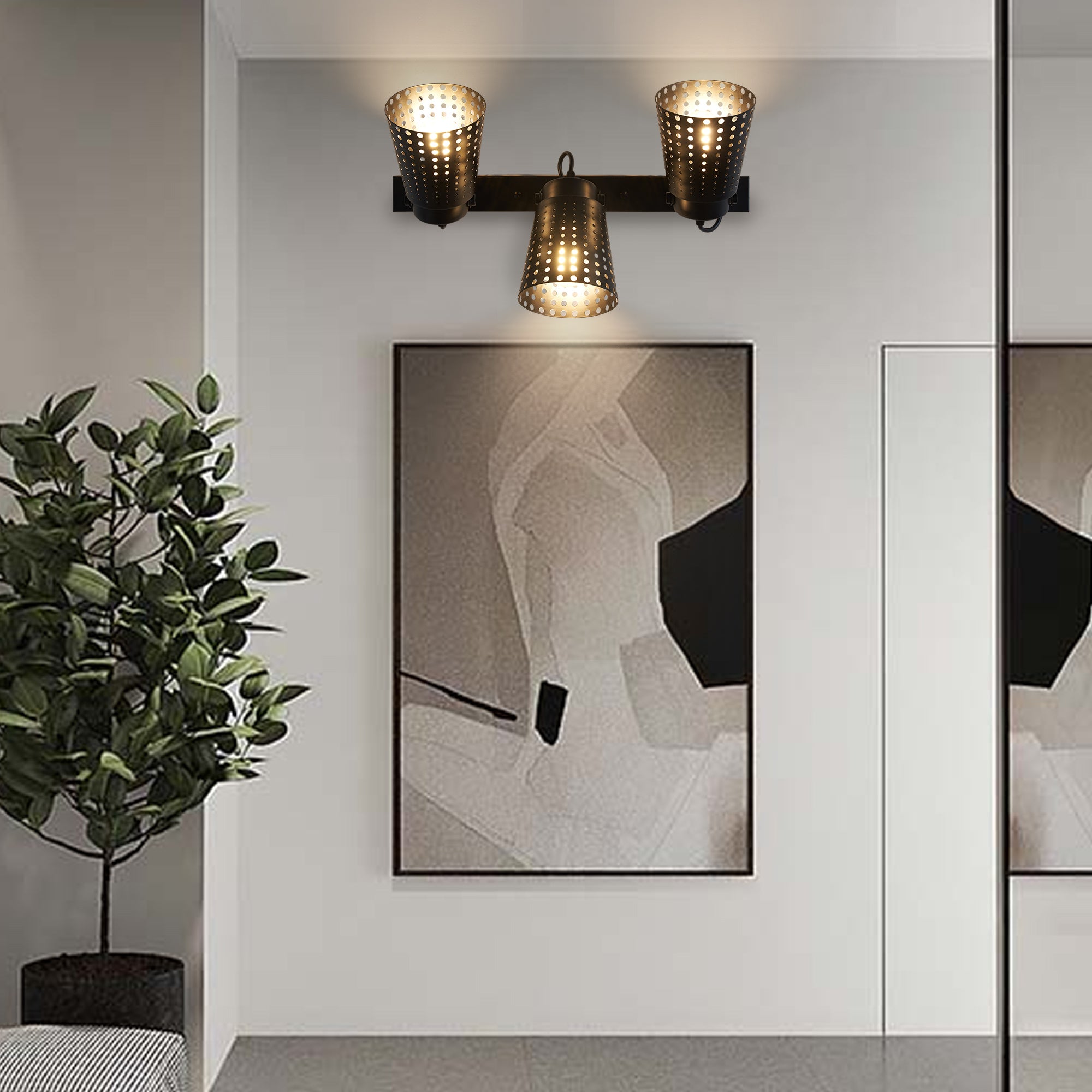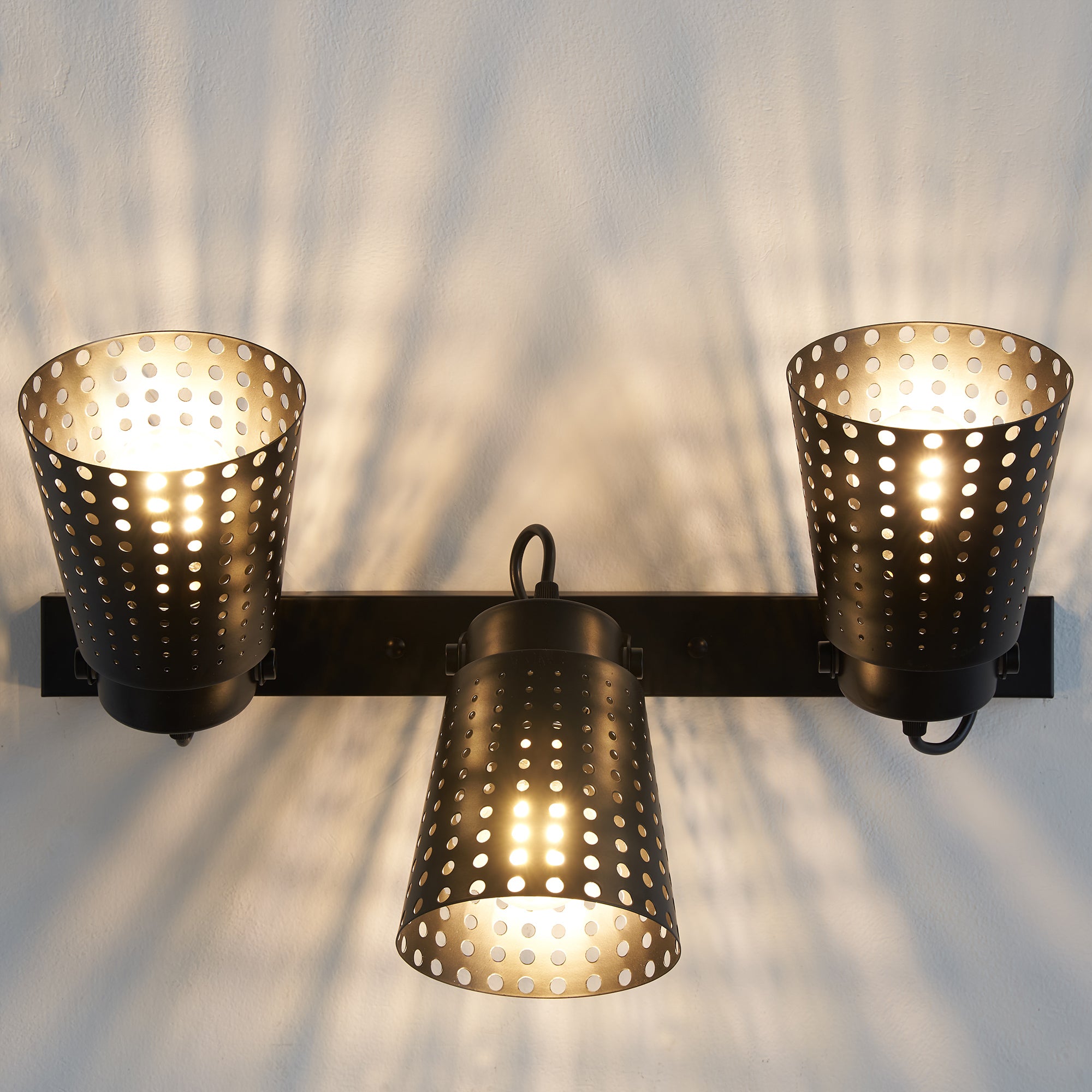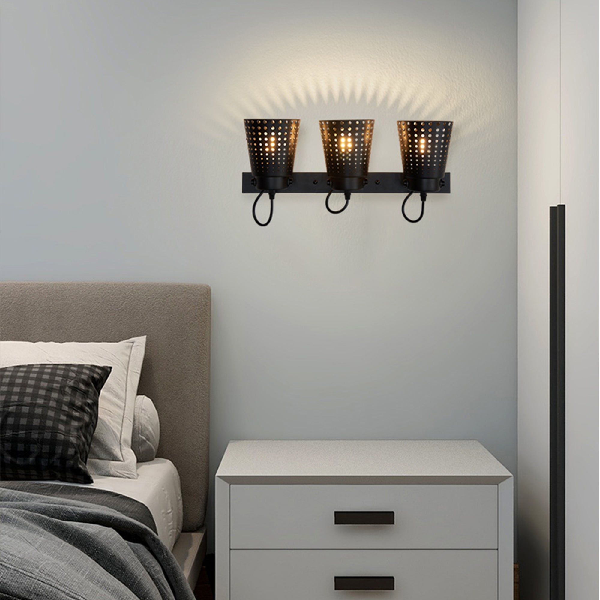JASIWAY 3-Light Retro Iron Hollow Adjustable Black Industrial Style Plug in Wall Sconce Lighting