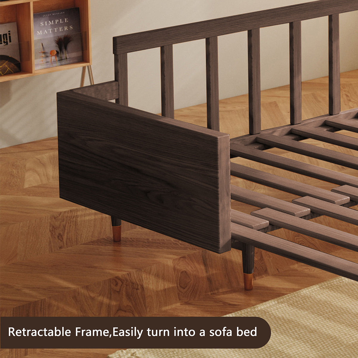 JASIWAY 82.7” Walnut Color Wooden Frame Retractable Sofa Bed – The Perfect Fusion of Style and Function