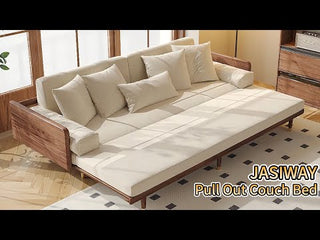 Transform your living space with the JASIWAY 82.7” Walnut Color Wooden Frame Retractable Sofa Bed—where modern design meets everyday practicality. Designed to be as functional as it is stylish, this 3 seater sofa bed easily transitions from a sleek sofa to a spacious pull-out bed, offering you versatility without compromising on comfort or aesthetics. Inspired by the Japandi minimalist style, this sofa bed is the perfect addition to any modern home.