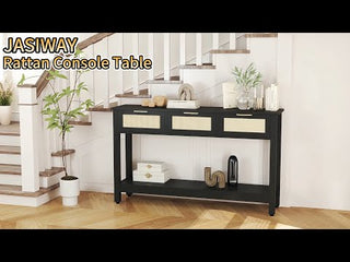 JASIWAY 47″ Rattan Console Table – 3-Drawer Entryway Organizer, Anti-Tip & Narrow Hallway Use