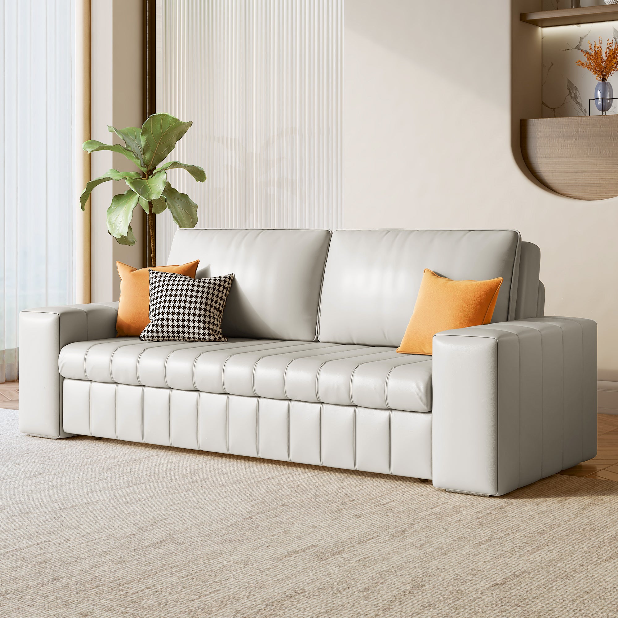 JASIWAY 62.99" Modern Upholstered Couch Bed Leather Sleeper Sofa with Storage Space