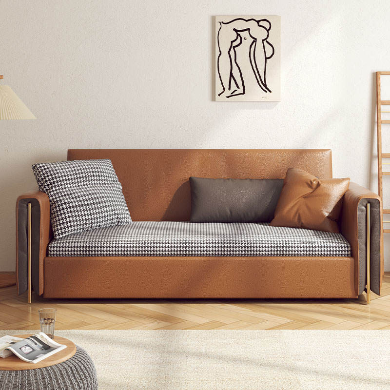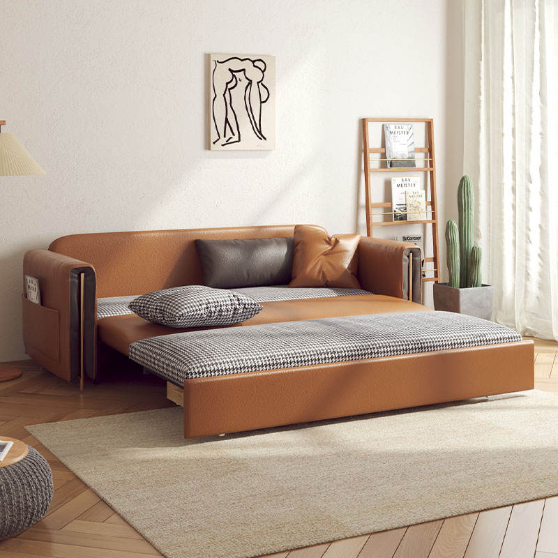 JASIWAY Brown Convertible Sofa Comfortable Leather Sleeper Sofa with Storage