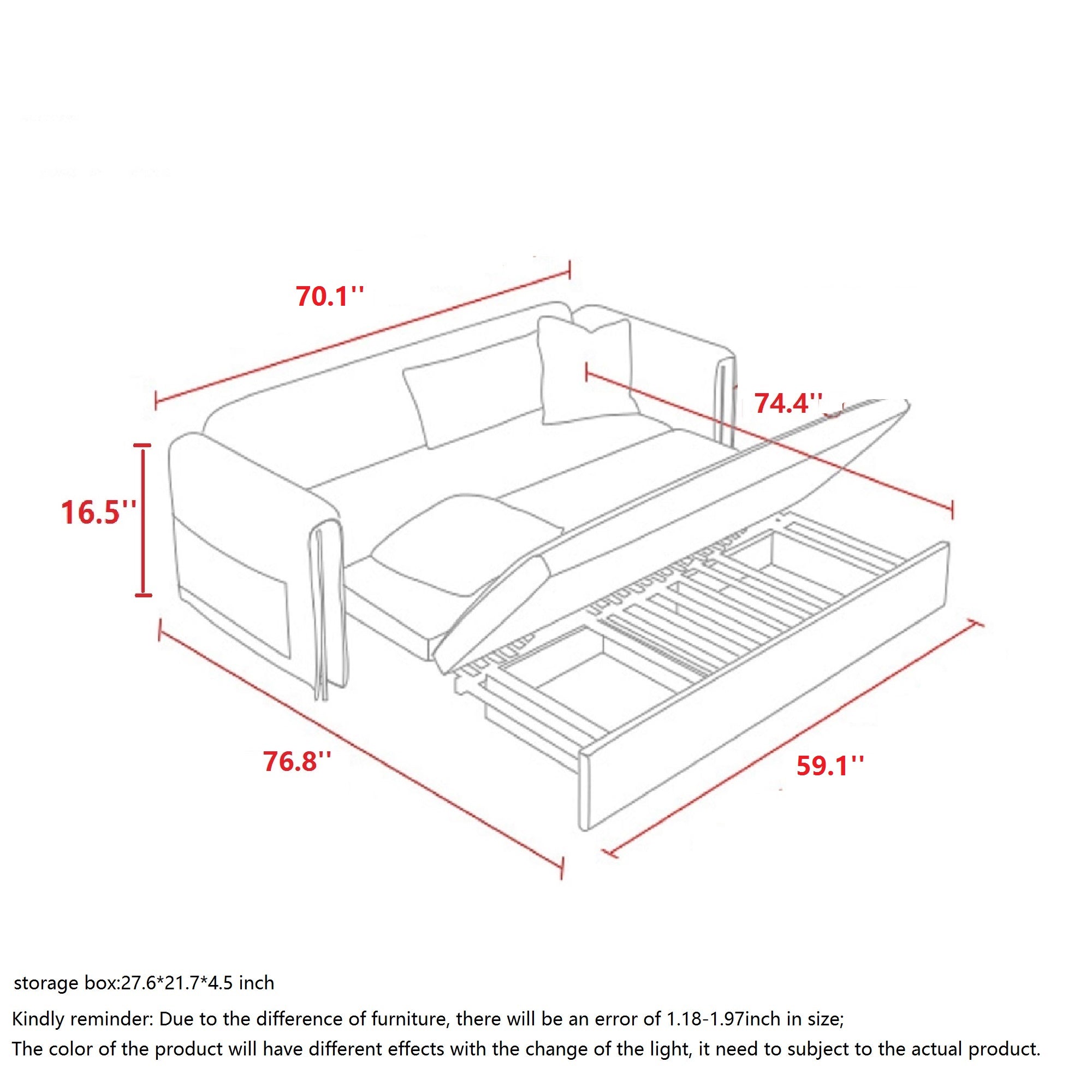 Home is a haven for us to rest, so the sofa is a warm embrace. When you get home, you should relax your whole body and let your body, which has been tense all day, indulge in the arms of the sofa. This retractable sofa easily turns into a bed. Technology cloth fabric is waterproof and dirt-resistant, daily stains only need to be gently wiped with water, wear-resistant and scratch-resistant, and you are not afraid of pets at home. With cotton and linen cushion design, comfortable and soft, not easy to pill, and not easy to fade. It conforms to the human body curve and easily supports all parts of the body. The sofa is filled with a high-resilience sponge. With full and round armrests, and with storage bag design. High manganese steel sofa frame, stable and durable, pushes and pull smoothly, gives you a stable sense of security, bearing up to 1100 lbs. There is storage space under the sofa for bulky items to keep the living room tidy and clean.