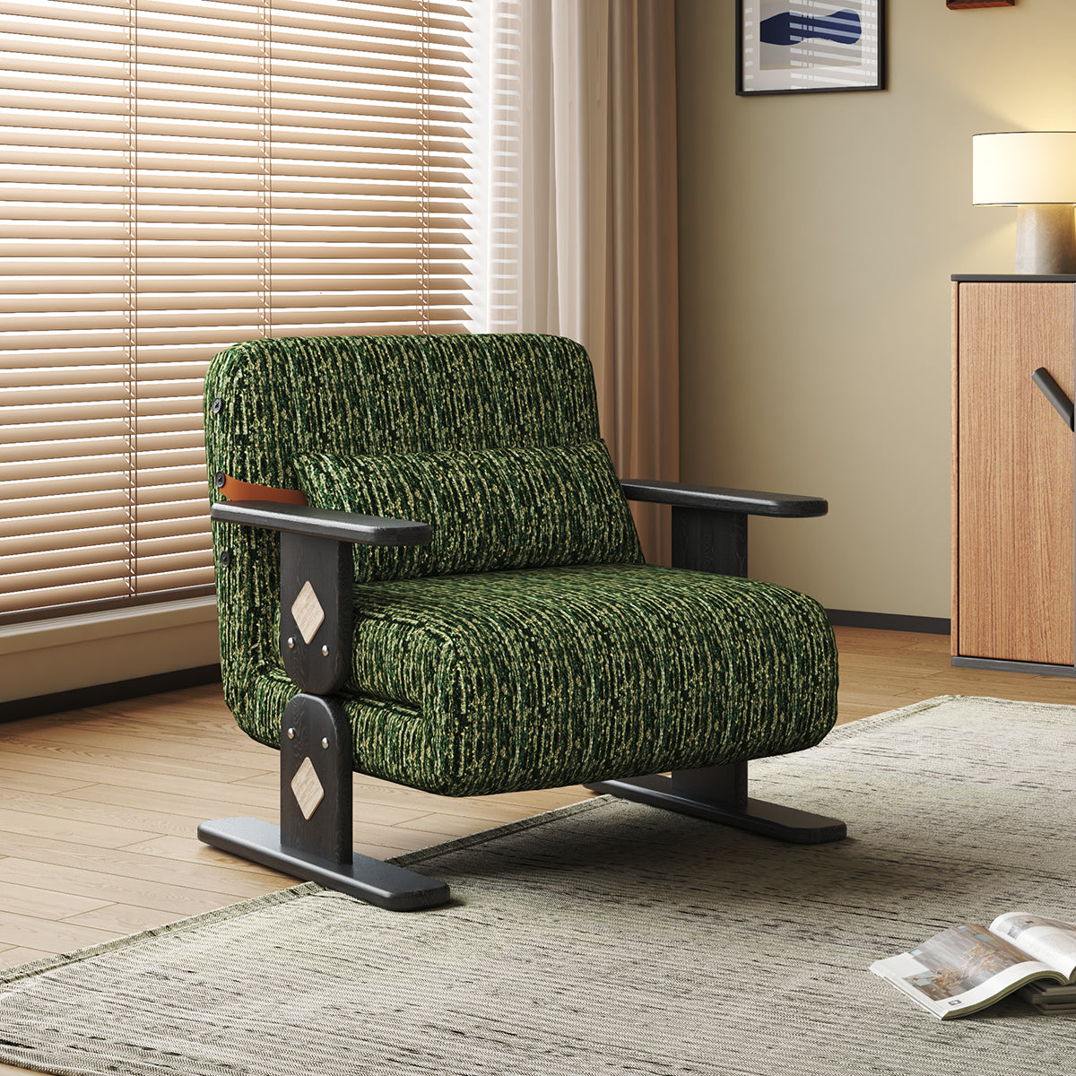 The first thing people usually notice is the chenille upholstery. It’s thick, soft, and has that textured warmth that feels inviting in every season. Chenille has a unique way of catching the light, giving the sofa an elevated, tactile look that feels much more luxurious than typical small-space furniture. Whether you’re lounging with a laptop, hosting guests overnight, or sinking in after a long day, the fabric always feels cozy and breathable.