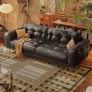 - Premium Genuine Leather: Crafted from large pieces of genuine top-grain leather, this sofa avoids using scrap pieces, ensuring longer durability, superior breathability, and a clear, rich leather texture. It's scratch-resistant, waterproof, and more elastic than regular leather.