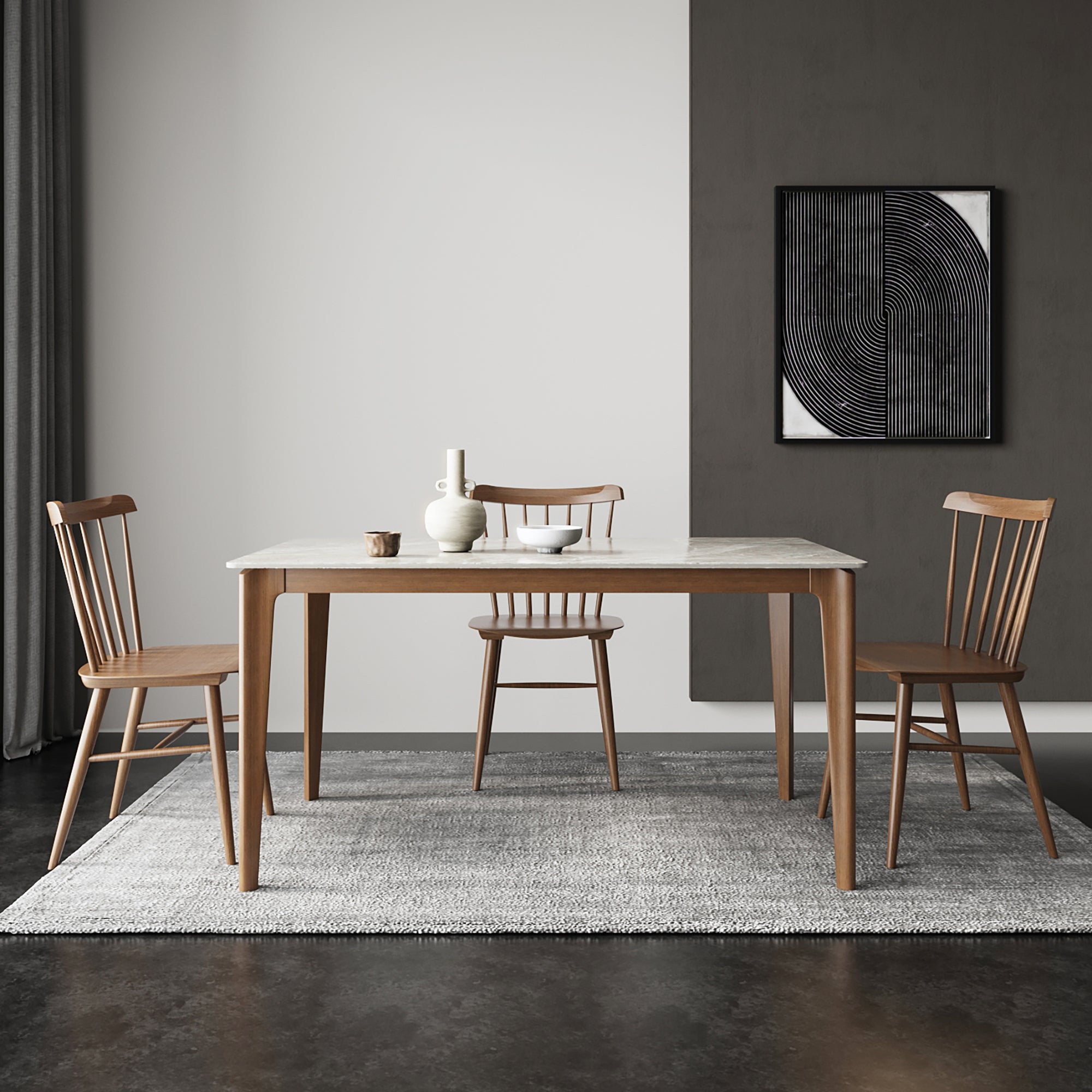 Crafted from high-quality slate and wood materials, the JASIWAY dining table showcases a deep texture and natural beauty. Its rectangular design optimizes tabletop space, making it suitable for various home dining occasions, whether sharing meals with family or hosting intimate gatherings.