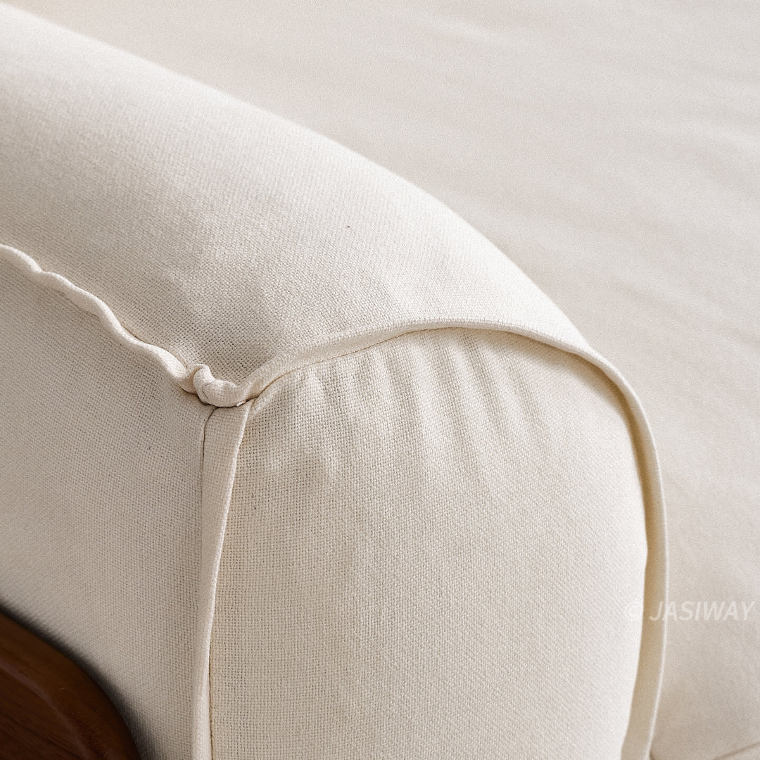 This modern sofa is designed with a Japandi-inspired aesthetic, making it a perfect fit for minimalist, Scandinavian, and contemporary interiors. Its neutral tones and wood base also make it easy to style as a modern minimalist couch or a warm, natural living room sofa centerpiece.