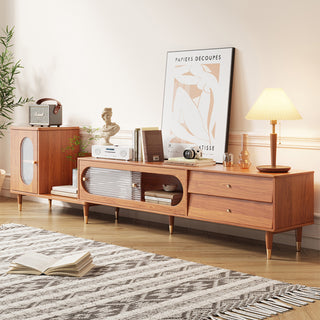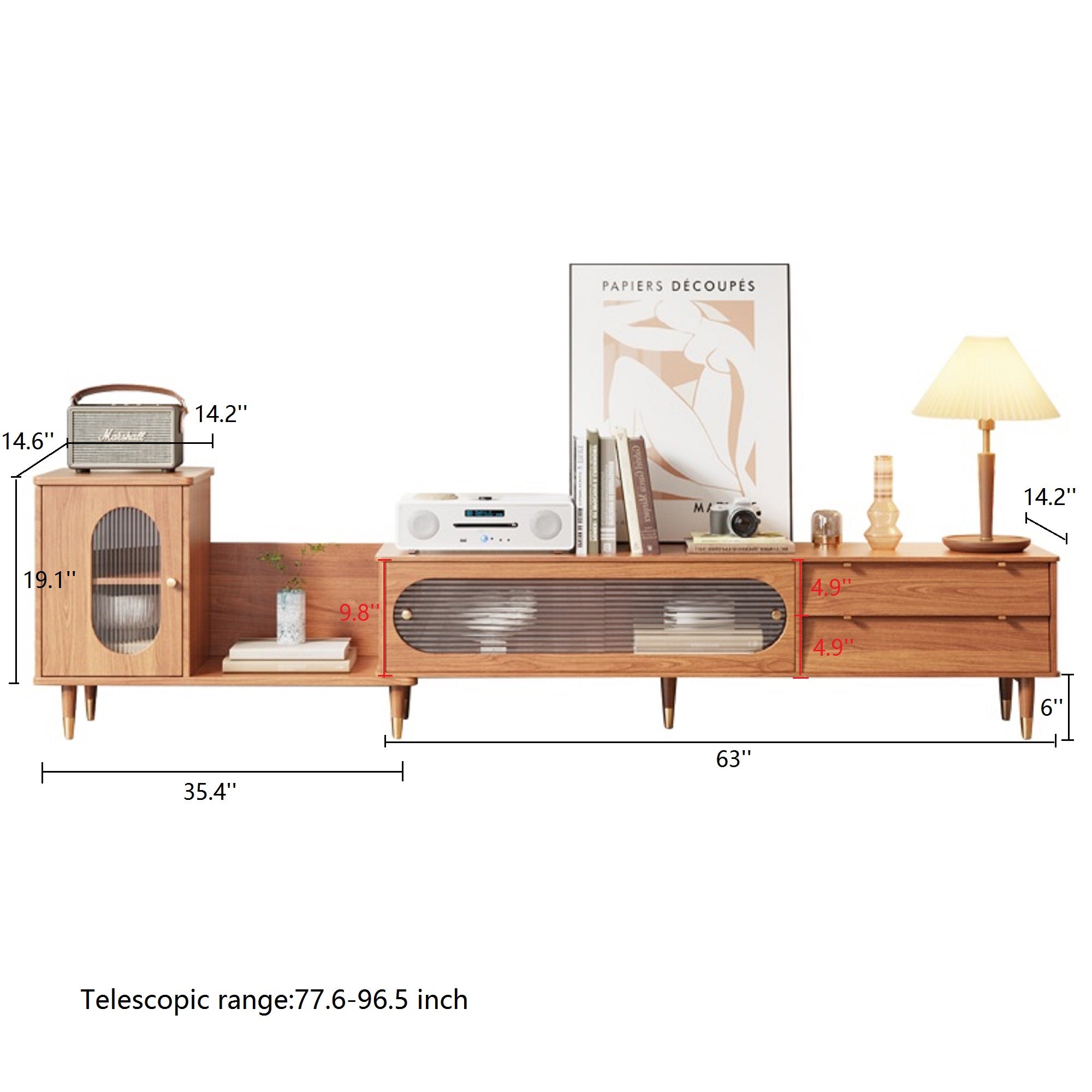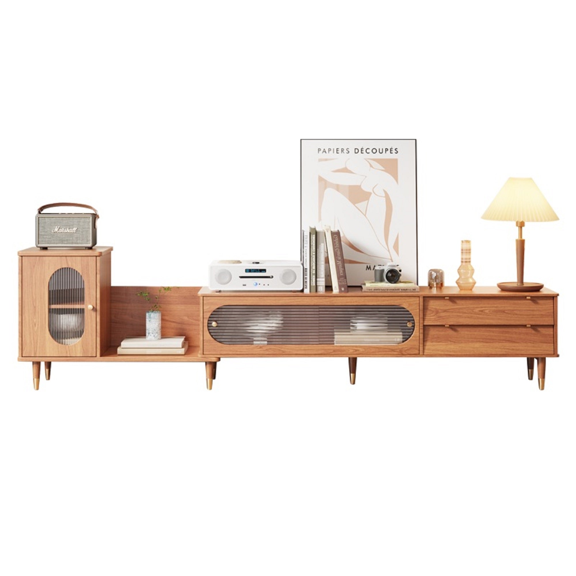 Recommend this living room furniture - simple style telescopic tv stand. Simple appearance design, considering the rationality of the structure, to ensure that the product is durable: function partition, rich storage way, multiple storage spaces. Cabinet retractable design can be installed left or right and can adjust the length, to adapt to different types of housing, storage space size also changes with the retractable length. The cabinet also has a cable hole on the back panel that can connect to the socket, but it also helps with ventilation and moisture. Please measure the size before purchase. This tv stand can match the same series coffee table.
