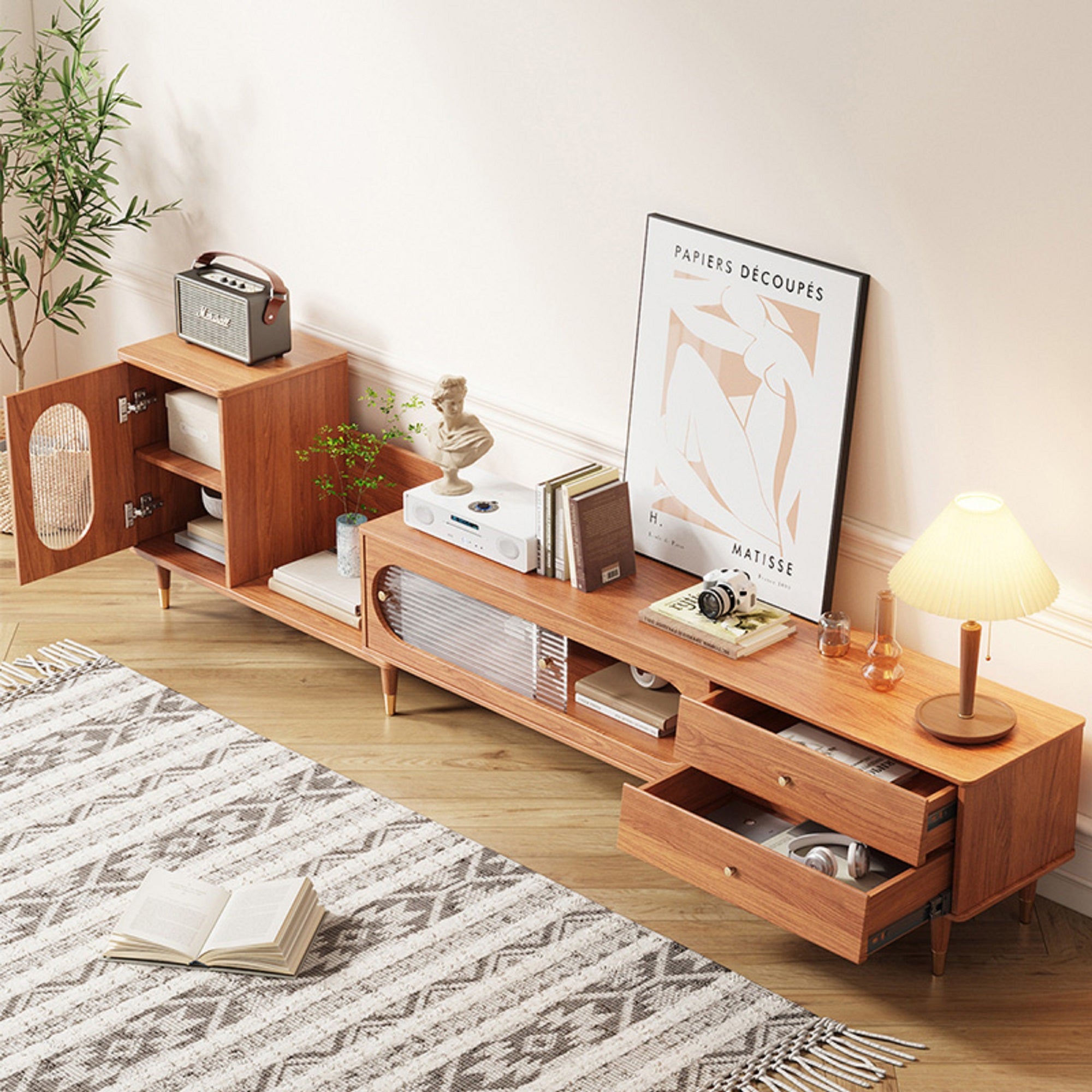 JASIWAY Rectangle Wood Extendable TV Stand with Bookshelf & Storage Drawers