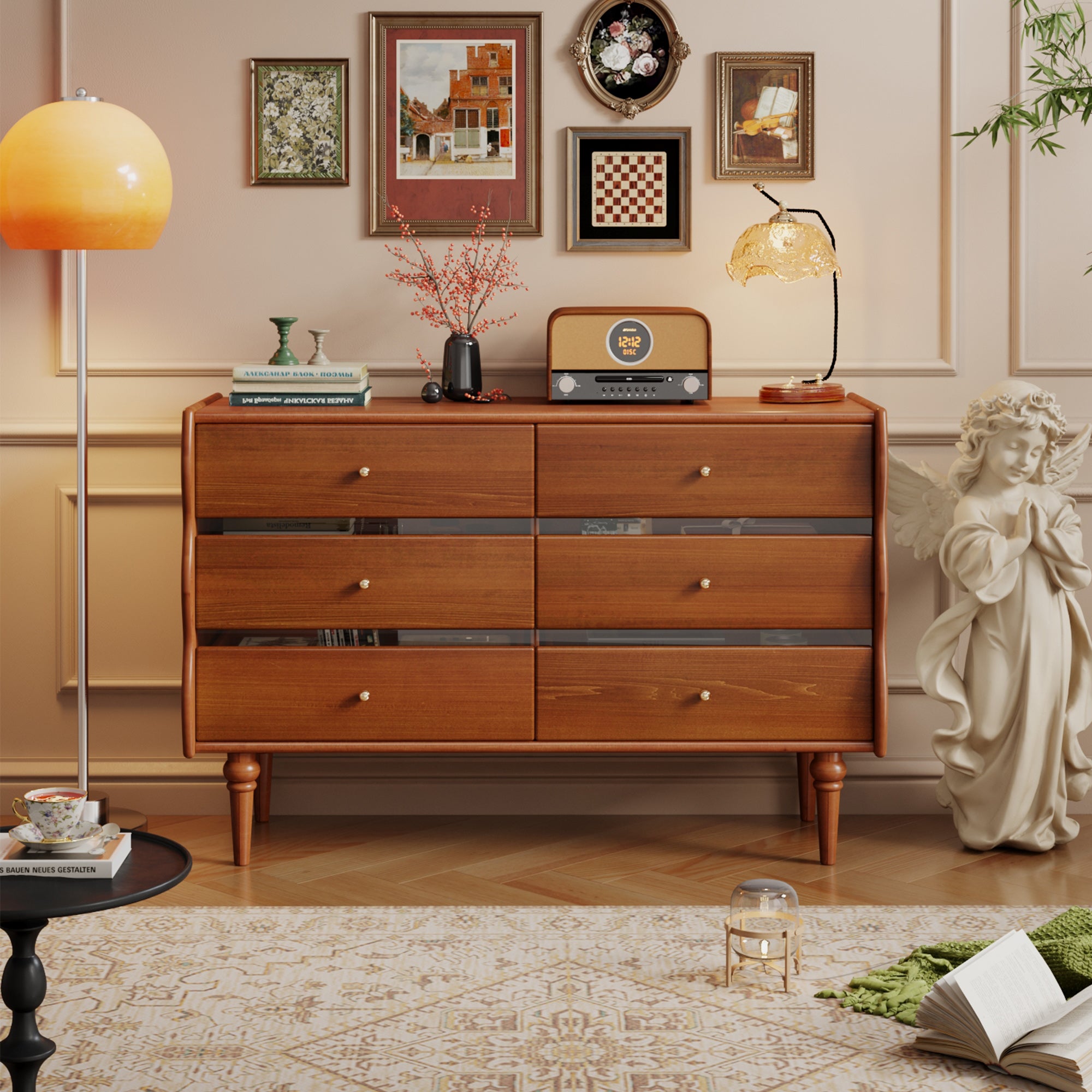 Every detail of this chest is carefully crafted to ensure quality and uniqueness. The drawers are meticulously finished, highlighting the chest's timeless appeal and showcasing the artisanal workmanship that sets it apart from ordinary furniture.