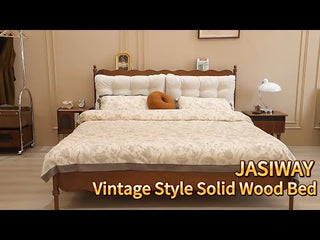 JASIWAY Vintage Solid Wood Master Bed with Upholstered Headboard