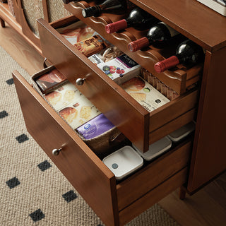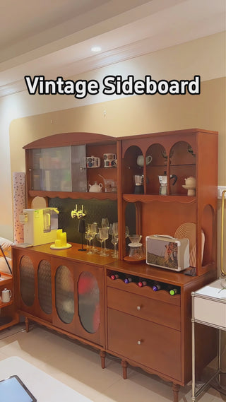 Elevate your dining area with the JASIWAY Vintage Solid Wood Sideboard, a perfect blend of timeless elegance and practical storage. This spacious storage and display cabinet is designed to meet all your organizational needs while adding a touch of vintage charm to your home.