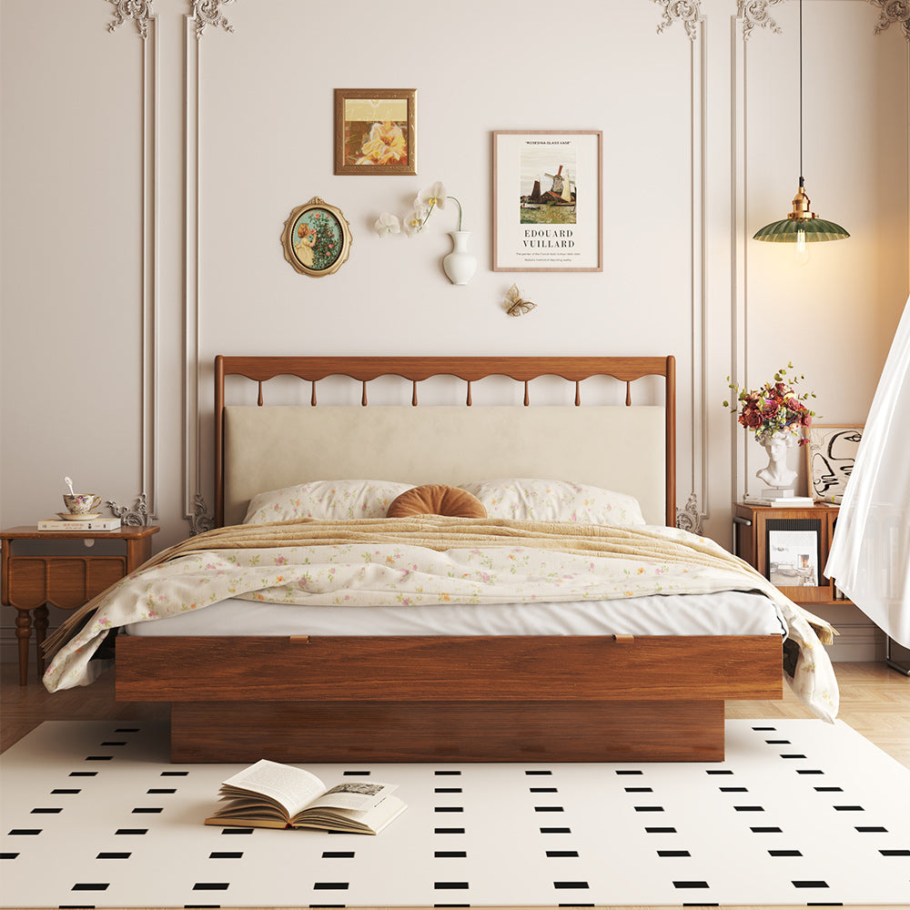 JASIWAY Vintage Storage Bed Solid Wood Floating Bed with Large Storage