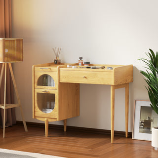 The JASIWAY Wooden Makeup Vanity Table is crafted from high-quality wood. The spacious drawer and distinctive side cabinet provide ample storage for cosmetics, jewelry, and accessories, helping you keep everything organized. The side cabinet’s unique rounded glass-panel doors add a modern, artistic flair to the piece, while the compact design makes it an ideal fit for any room size.