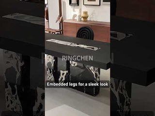 Elevate your dining experience with the RINGCHEN Horizon Gourmet Dining Table, a luxurious statement piece designed to bring refinement and practicality to your dining room or kitchen. With its sleek square silhouette and striking black-and-white palette, this high-end dining table seamlessly combines natural materials, meticulous craftsmanship, and innovative design.