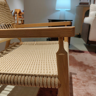 - Materials: Red oak solid wood frame, handwoven paper twine seat and backrest